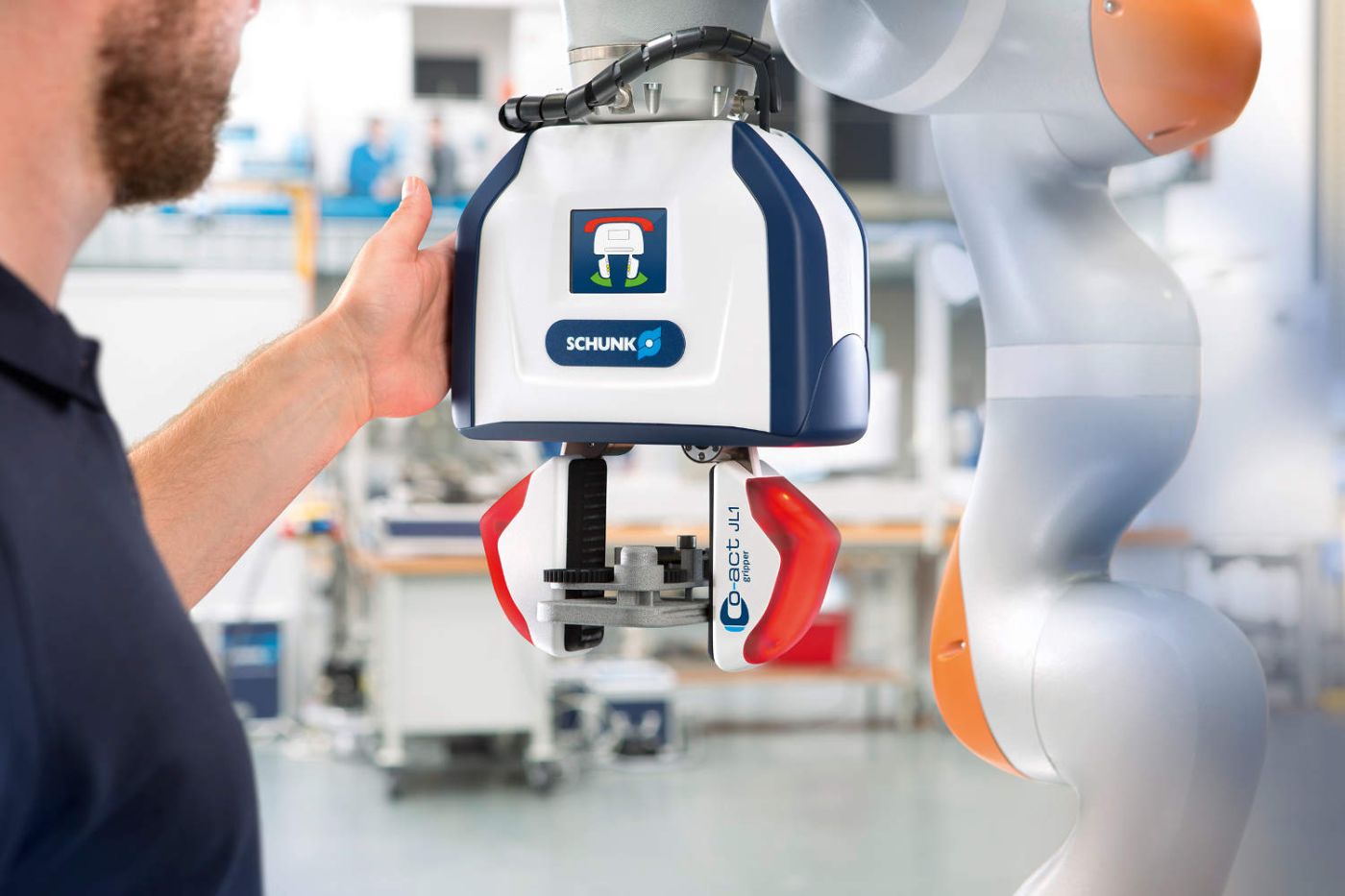 Bislang haben wir es noch nicht erlebt, dass Greifer für kollaborative Anwendungen grössere Ängste bei Anwendern erzeugen. Vielmehr dominieren Neugierde und Begeisterung – vor allem wenn es sich um intelligente Systeme wie den Schunk Co-act JL1 Greifer handelt. Menschen begegnen diesem System spielerisch: Sie testen intuitiv aus, wann die Sicherheitstechnologien anspringen und wie sich das System verhält. Damit gewinnen sie Vertrauen und können eventuelle Berührungsängste schnell abbauen.