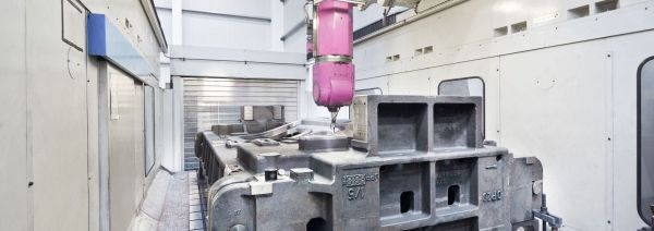 Wiehagen: Wir haben es vor rund 15 Jahren eingeführt, weil es eine sehr hohe Steifigkeit bietet und weil es die nötige Fundamenttiefe um etwa ein Drittel senkt. Das verringert den baulichen Aufwand. Ausserdem steigt die dynamische Belastbarkeit. Ein weiterer wichtiger, kostensparender Effekt: Die Geometrie der Maschine bleibt sehr lange Zeit konstant, so dass der Aufwand für das Rekalibrieren im Laufe eines Maschinenlebens sehr viel geringer ausfällt. Denn die Kalibrierung einer grossen Portalfräsmaschine dauert durchaus schon mal fünf bis zehn Tage, in denen sie kein Geld verdient. Das U-Fundament ist die steifste und damit beste Variante eine Hoch-Gantry-Maschine aufzustellen.