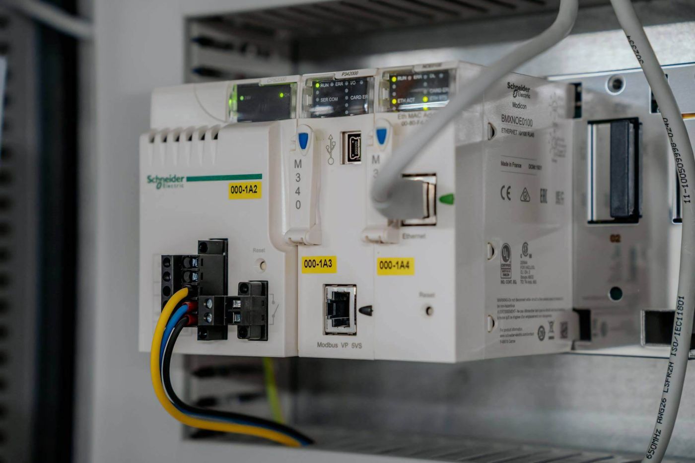 Im Fall der STEP in Yverdon hat AMICS auf eine Kombination verschiedener Hard- und Softwarelösungen gesetzt, die zeitlich gestaffelt in die laufende Anlage eingesetzt wurden. Der Fokus lag dabei klar auf der Verbesserung der Ausfallsicherheit. An den verschiedenen Becken und Stationen wurden daher zunächst die vorhandenen Steuerungen gegen die robusten Modicon-Steuerungen M340 und M580 von Schneider Electric ausgetauscht. «Moderne und IoT-fähige SPS-Steuerungen sind zunächst eine zentrale Komponente, um die Konnektivität der Anlage zu verbessern», kommentiert Thomas Gutknecht von AMICS die technische Umsetzung. «Die ganzen Daten, die wir überall in der Anlage zu Wasserstand, Druck oder Energieverbrauch sammeln, werden von den Steuerungen erfasst und an ein übergeordnetes Überwachungssystem weitergegeben. Dass die Schneider-Steuerungen über ein hohes Mass an Cybersicherheit verfügen, ist dabei natürlich ein ganz wichtiges Kriterium.»