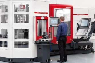 Das 5-Achsen-BAZ Acura EL von Hedelius wurde mit einem 22 Paletten Multi-Palettenspeicher ergänzt. Einzelteile als Wiederholteile oder kleine bis mittlere Serien lassen sich damit wirtschaftlich fertigen.