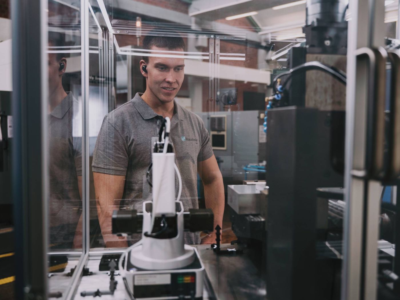 Marvin Norda: Mit einer sprachgesteuerten Fertigungszelle: Wir haben eine 5-Achs-Fräsmaschine und einen 4-Achs-Roboter vollständig mit Sprachsteuerung ausgestattet. Diese Technologieplattform ermöglicht es Kunden, in unterschiedlichen Störgeräuschen verschiedene Mikrofone und Headsets sowie unterschiedliche Sprachbefehle zu testen. Unsere Erfahrung zeigt, dass das Testen der Sprachsteuerung in einer realen Maschinenumgebung unsere Industriepartner am schnellsten überzeugt.