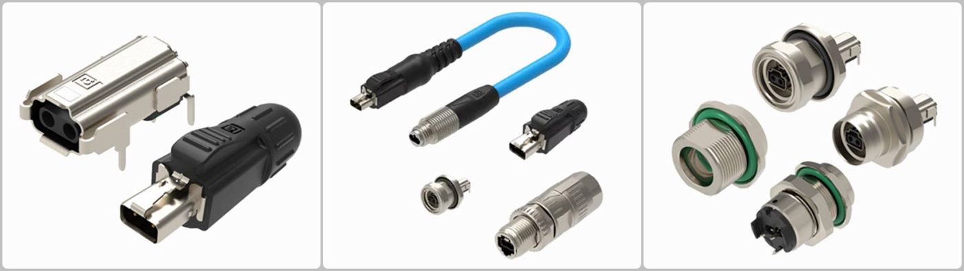 Das SPE-Portfolio umfasst IP20-zertifizierte Leiterplattenbuchsen, Patchkabel und Kabelsätze für Verbindungen im Reinraum sowie IP65/IP67-zertifizierte runde M8/M12-Patchkabel, Kabelsätze und Buchsen für zuverlässige Industrial Ethernet Verbindungen von Feldgeräten.