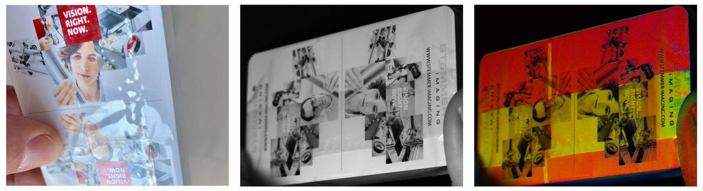 So lässt sich nach seinen Worten mit dieser Technologie beispielsweise sehr einfach untersuchen, ob die Aufreisslaschen von in Folie eingeschweissten Kartendecks fehlerfrei sind. Bei einer Untersuchung mit unpolarisiertem Licht sind derartige Fehler deutlich schwieriger und bisweilen gar nicht zu erkennen.