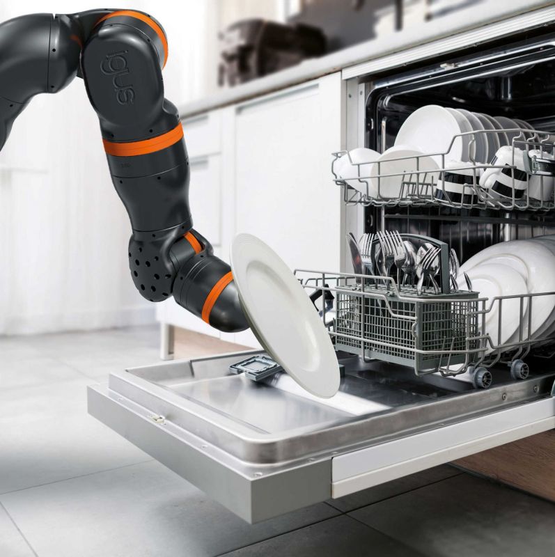 Um die Roboter für jeden Haushalt bezahlbar zu machen, setzt die Igus GmbH bei den Getrieben, Gelenken und Verbindungen auf ihre seit 50 Jahren betriebene Pionierarbeit mit «motion plastics»-Technologien. Im Kern sind das eigenentwickelte schmier- und wartungsfreie Hochleistungskunststoffe. Immer kommen dabei Produkte heraus, die günstig sind und gleichzeitig sehr lange halten.