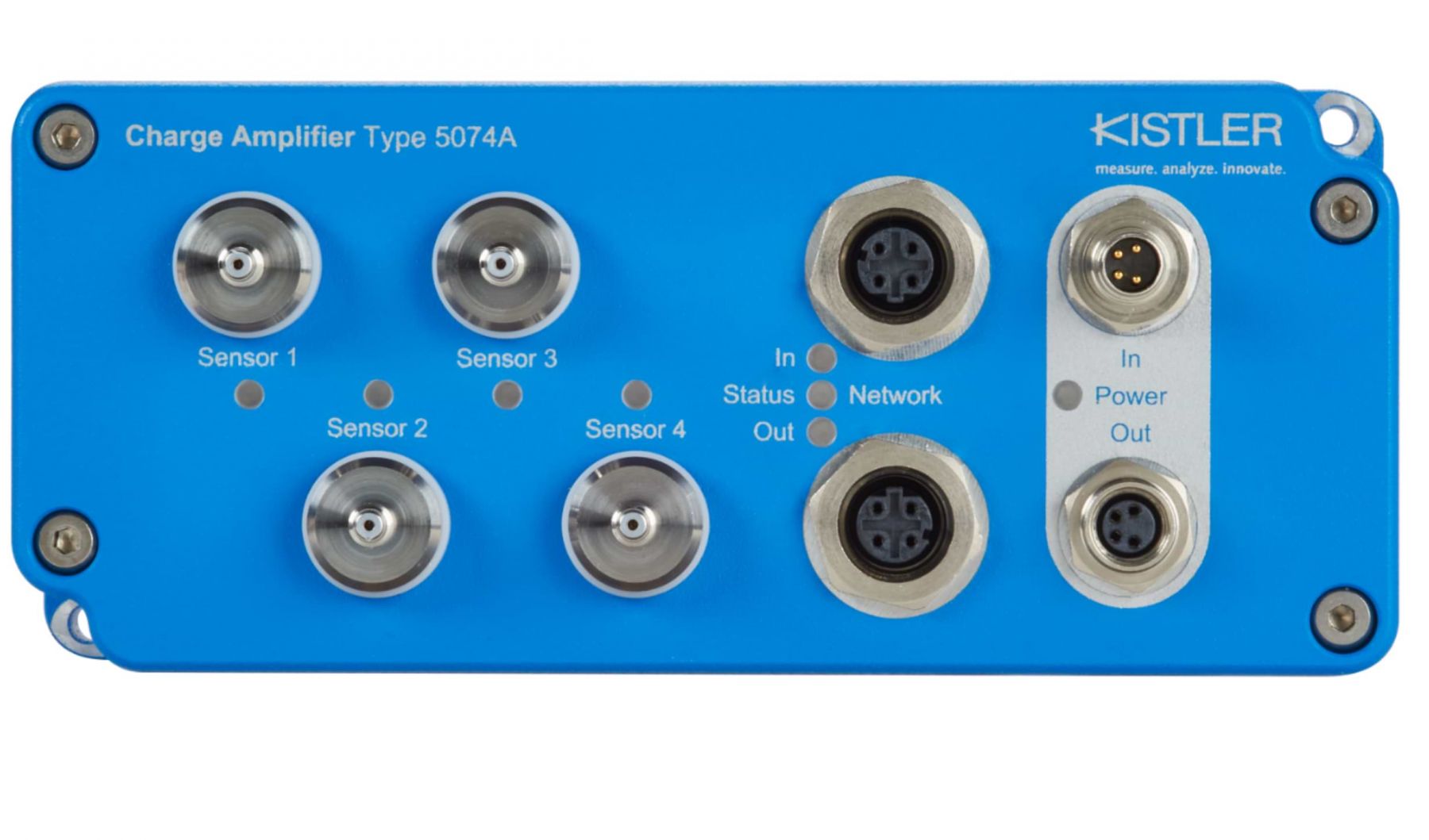 Der digitale industrielle Ladungsverstärker von Kistler (Typ 5074A) ist weltweit der einzige Verstärker für quasistatische Messvorgänge mit piezoelektrischen Sensoren an echtzeitfähigem industriellem Ethernet. Beliebige Sensoren mit Ladungssignalen können damit direkt eingebunden und Einstellungen am Messverstärker über die Maschinensteuerung vorgenommen werden.