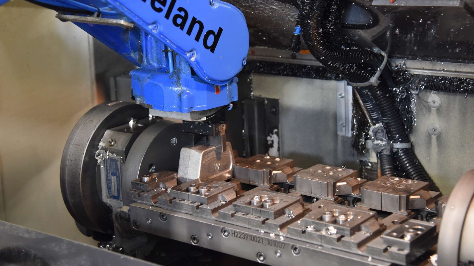 Jürgen Eisinger ist mit dieser Lösung überaus zufrieden: «Was uns besonders am Herzen liegt, ist die Prozesssicherheit von Zuführung und Robotik. Störungen oder gar längere Ausfälle kennen wir an dieser automatisierten Bearbeitungsmaschine nicht. Zudem setzt die Anlage Massstäbe hinsichtlich der Taktzeiten, die bei vier Teilen pro Minute liegt.» Und auch die erreichbare Autonomie, die je nach Teilevariante einige Stunden betragen kann, begeistert die Wieland-Mannschaft. Ausschlaggebend für einen möglichst langen autonomen Betrieb sind die maximal mögliche Bevorratung von Rohteilen durch das Zuführsystem sowie die Bereitstellung der maximalen Anzahl an leeren Metallbehältern im System.