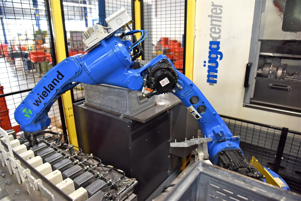 Für die Auswahl des Motoman MH12 gab es einen weiteren triftigen Grund, wie Röhrig betont: «Wir haben die Maschine auch aufgrund ihrer hervorragenden Reichweite ausgewählt. Denn nur dadurch konnten wir den Roboter in ausreichendem Abstand von der Bearbeitungsmaschine positionieren, so dass diese bei Bedarf manuell zu bedienen ist. Diese Option wollte sich Wieland für die händische Bearbeitung etwaiger Kleinstserien offenhalten.»