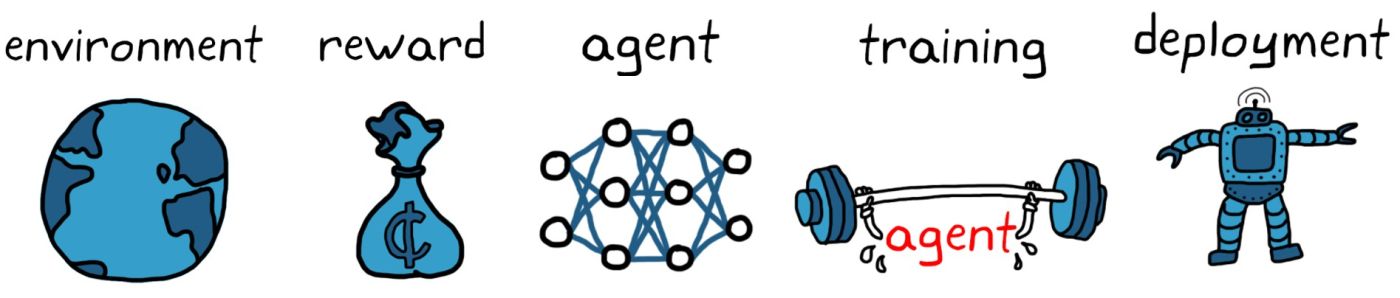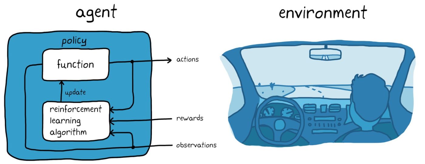Zunächst müssen Sie die Umgebung definieren, in der der Agent arbeitet, einschliesslich der Schnittstelle zwischen dem Agenten und der Umgebung. Die Umgebung kann entweder ein Simulationsmodell oder ein reales physikalisches System sein. Simulierte Umgebungen sind in der Regel gut für die ersten Schritte, da sie sicherer sind (echte Hardware ist teuer) und Experimente ermöglichen.