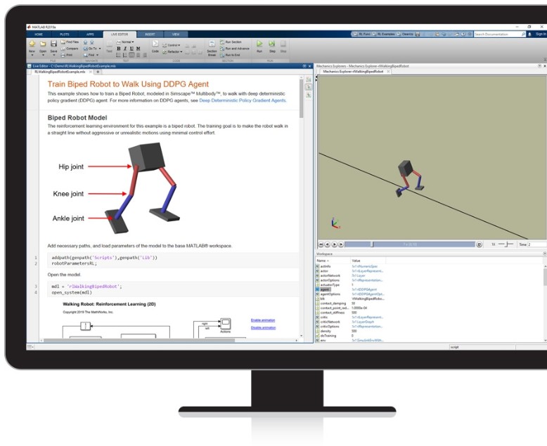 Heute können Sie mit Tools wie der Reinforcement Learning Toolbox (Abbildung 5) Regler und Entscheidungsalgorithmen für komplexe Systeme wie Roboter und autonome Anlagen schnell trainieren und implementieren.