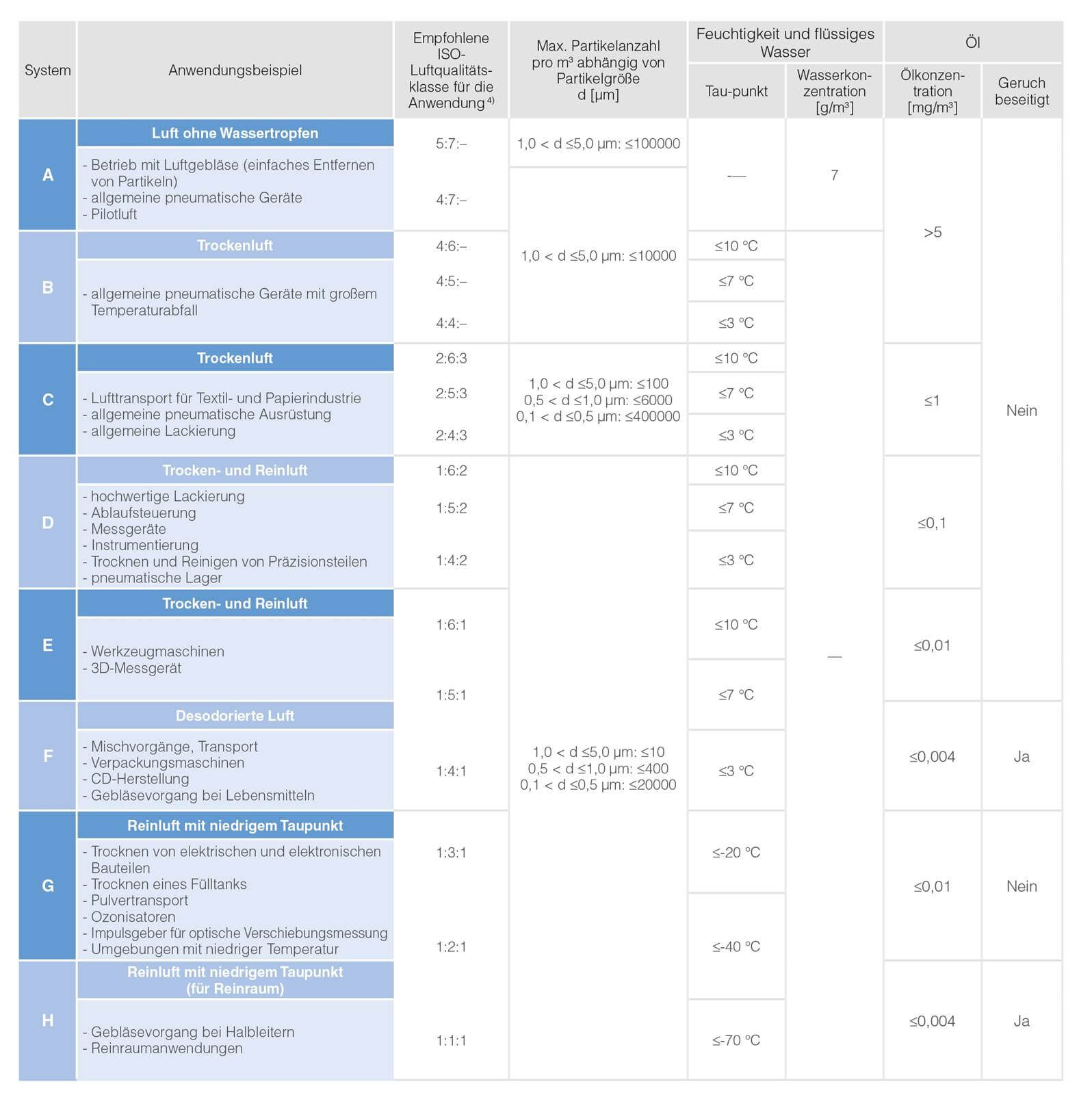Die Bestimmung des akzeptablen Niveaus an Staub, Feuchtigkeit und anderen potenziellen Verunreinigungen beruht auf der Anwendung. Für empfindliche Ausrüstung hilft die ISO-Norm 8375-1 bei der Bestimmung der geeigneten numerischen Einstufung für Partikel- und Ölgehalt. Einfach ausgedrückt: Je niedriger die Nummer für die jeweilige Kategorie, desto sauberer die Druckluft.
