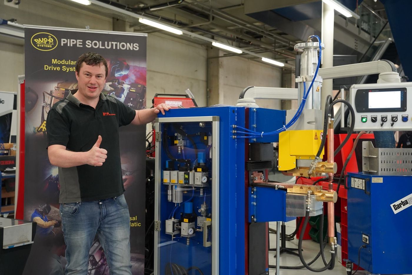 Ein Besuch beim Stand der MTP Mig-Tig-Plasma AG führt nicht nur zu Begegnungen mit Schweissrobotern, sondern auch mit dem gut gelaunten Inhaber Lukas Condrau, der in der ersten halben Stunde des Tages schon unglaublich viele Interessenten auf dem Stand hatte, als sein Standpersonal noch gar nicht richtig vorbereitet war. Auf dem Stand fällt eine lineare Mittelfrequenz-Punktschweissmaschine vom italienischen Hersteller R&W Tech auf, deren Vertretung MTP in der Schweiz innehat. Diese Schweissmaschine, entwickelt für eine Vielzahl von Anwendungen und zeichnet sich durch ihre hohe Qualität der Schweisspunkte aus. Sie bietet kurze Anstiegszeiten des Schweissstroms, eine Einstellung der Zeit in Millisekunden und eine symmetrische Lastverteilung. Ihr modularer Aufbau ermöglicht die Anpassung für verschiedene Schweissanforderungen. «Eine wirklich beeindruckende Maschine», kommentiert Condrau, während sich bereits die nächsten Besucher für Gespräche einfinden.
