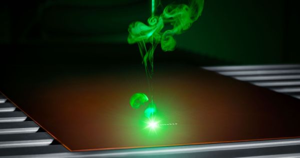 Auch das Thema Kupfer spielt für Trumpf eine wichtige Rolle: So kommt eine grüne Laserstrahlquelle zum direkten Verbinden von Kupfer mit Keramik (DCB: direct copper bonding) zum Einsatz. Innerhalb von 100 ms verbindet ein grüner Laser (TruDisk 1020) die doppelte Kupferschicht (2x 0,3 mm) mit einem Keramikträger. Ein Video zeigte, wie das DCB-Verfahren spritzerfrei und prozesssicher mit sehr geringer Einschweisstiefe (0,05 mm!) arbeitet.