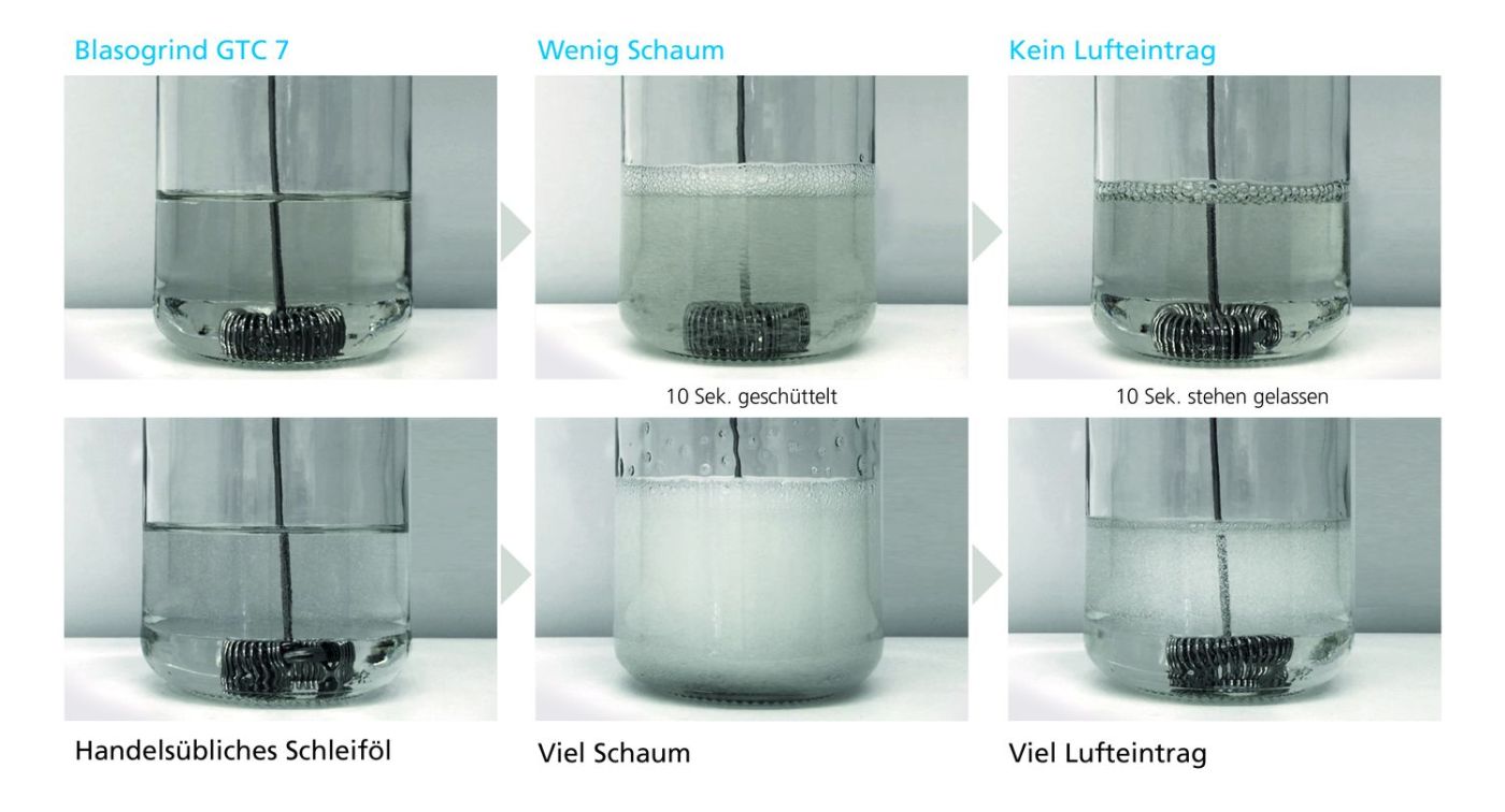 Auch das Schleiföl Blasogrind GTC 7 wird auf der Messe vorgestellt. Dieses bietet schnellen Luftaustrag für eine optimale Kühlung und ist sowohl für das Werkzeugschleifen wie auch das Profil- und Tiefgangschleifen geeignet.