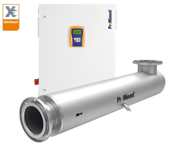 Im Portfolio hat ProMinent auch die hocheffiziente UV-Anlage Dulcodes LP F&B mit Vario-Flux-Lampe und dynamischer Lampenheizung für die chemiefreie Desinfektion von Produktwasser, wie sie in der Getränke- und Lebensmittelindustrie gebraucht wird. Die Dulcodes LP F&B ist die erste UV-Anlage, die über einen weiten Temperaturbereich schnell und präzise regelbar ist. Sie passt sich automatisch wechselnden Durchflüssen oder Änderungen der Wasserqualität an.
