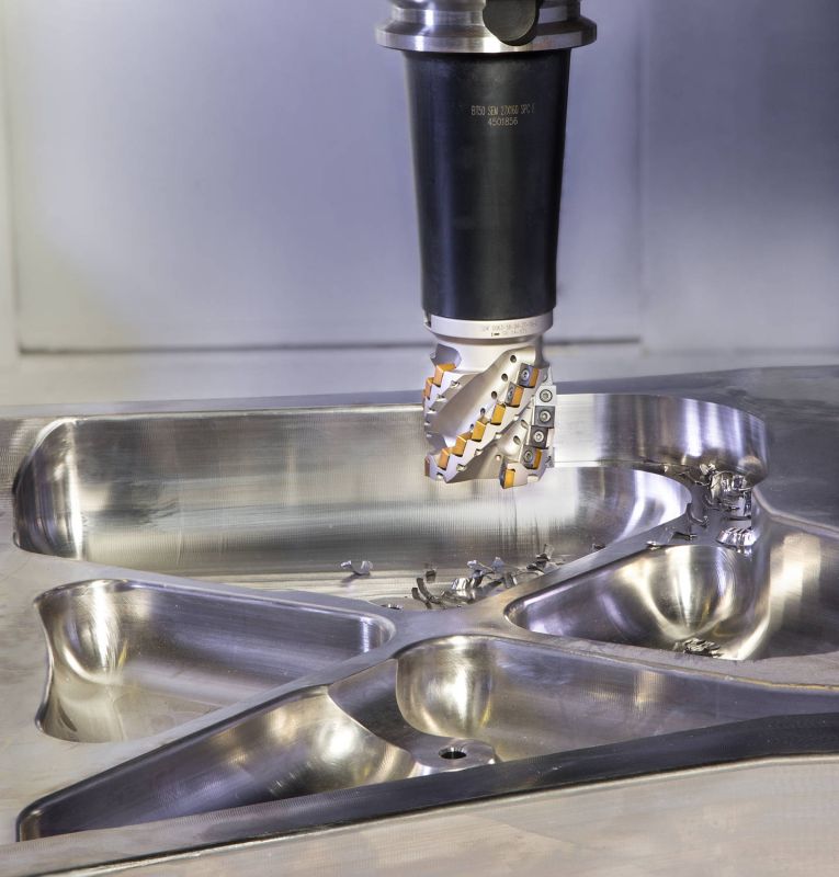 Hochvorschubfräser werden hauptsächlich zum Schruppen von Planflächen, Kavitäten und 3D-Oberflächen eingesetzt (Abb. 3). Bei der Bearbeitung von Grossteilen aus Stahl und Gusseisen sind diese Werkzeuge am gängigsten, obwohl Hochvorschubfräsen (HFM) von Titan und hoch hitzebeständigen Legierungen heute auch nicht ungewöhnlich ist.