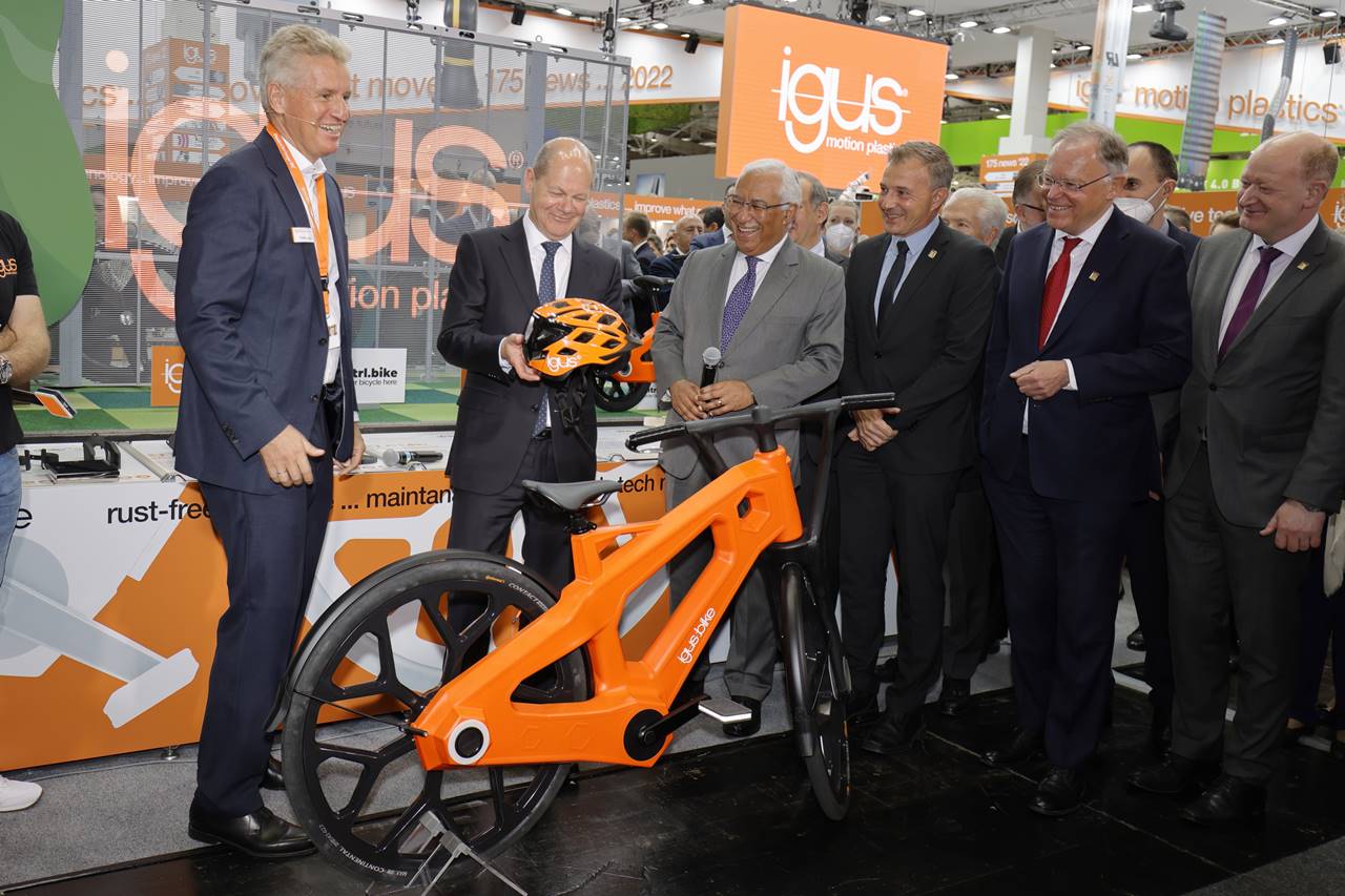 «Von ocean plastics zu motion plastics – das Konzept des Igus:bike hat das Zeug dazu, ein ökologisches High-Tech Produkt zu werden», so Blase. «Wir haben noch viele Ideen, zum Beispiel die Zustandsüberwachung durch smart plastics von Igus einzubauen. So kann man auf dem Smartphone sehen, wie viele tausend Kilometer das Rad noch fährt. Und damit können wir dann hoffentlich viele Menschen überzeugen, die dem Kunststoff heute noch skeptisch gegenüberstehen.»