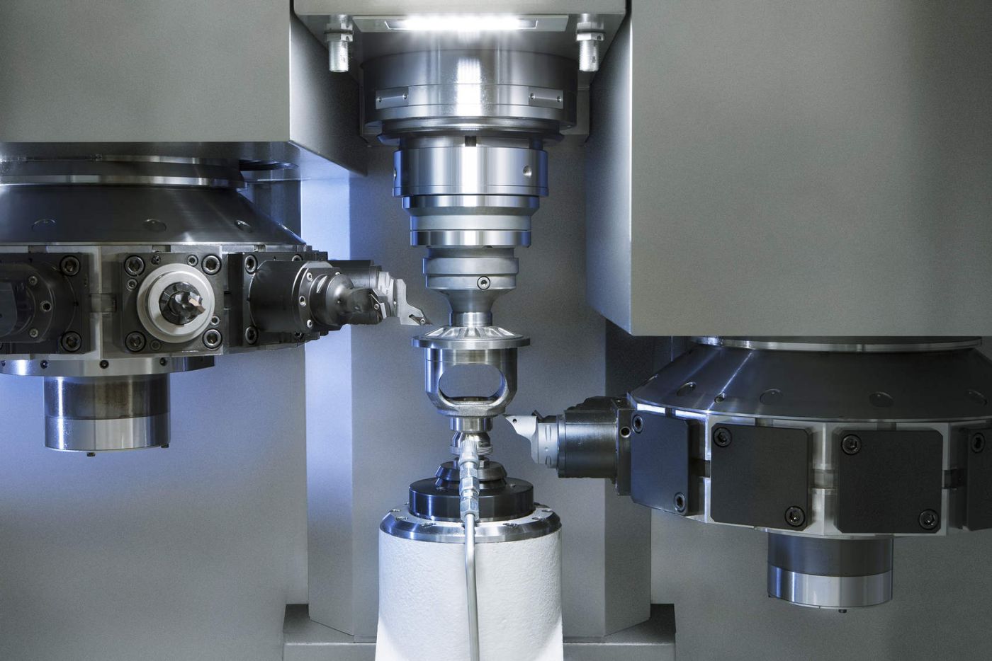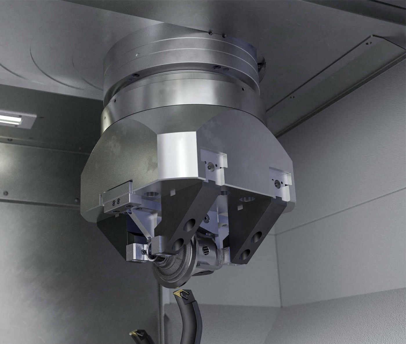 Die restliche Aussenbearbeitung des Differentialgehäuses erfolgt auf einer VT 4 Drehmaschine in nur einer Aufspannung. Dadurch werden Umspannfehler ausgeschlossen. Die VT 4 verfügt über zwei Werkzeugrevolver mit jeweils 11 Werkzeugplätzen. Dies ermöglicht eine 4-achsige Simultan-Bearbeitung und damit schnelle Prozesse. Für kurze Nebenzeitgen sorgt zudem die Parallele Be-und Entladung der Bauteile.