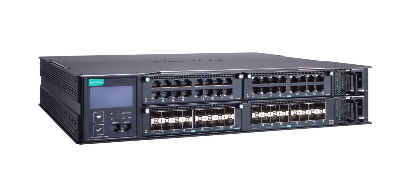 Bei der Entwicklung der MRX-Q4064/G4064-Geräte wurde viel Wert auf die Wartungsfreundlichkeit gelegt. Das modulare Design der Ethernet-Schnittstellen, Netzteile und Lüfter erhöht die Flexibilität enorm. Die Rackmount Ethernet-Switches von Moxa verfügen über integrierte LCD-Module (LCMs), mit welchen sich der Gerätestatus rasch und einfach überprüfen lässt und mögliche Fehler rasch behoben werden können. Die Hot-Swap-fähige Modularität ermöglicht den Austausch von Modulen, ohne dass der Betrieb beeinträchtigt wird.