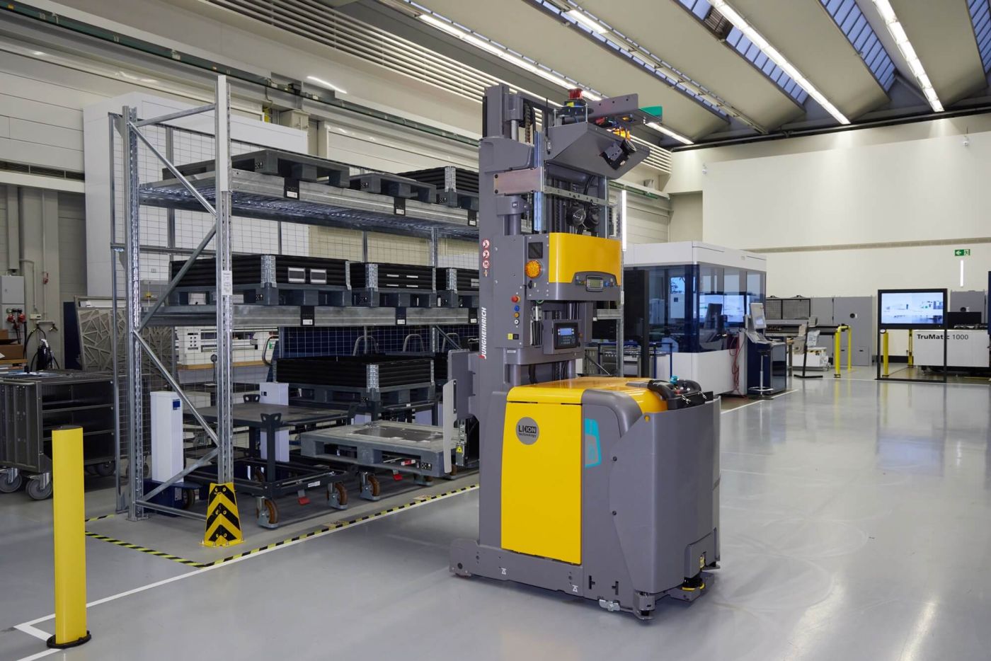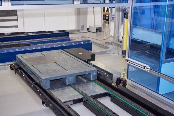 Eine intelligente Intralogistik kann in der Fertigung viel Zeit einsparen. Ein solches System ist «Smart Material Flow» von Trumpf vor, das mit Sensoren von Leuze ausgestattet ist.