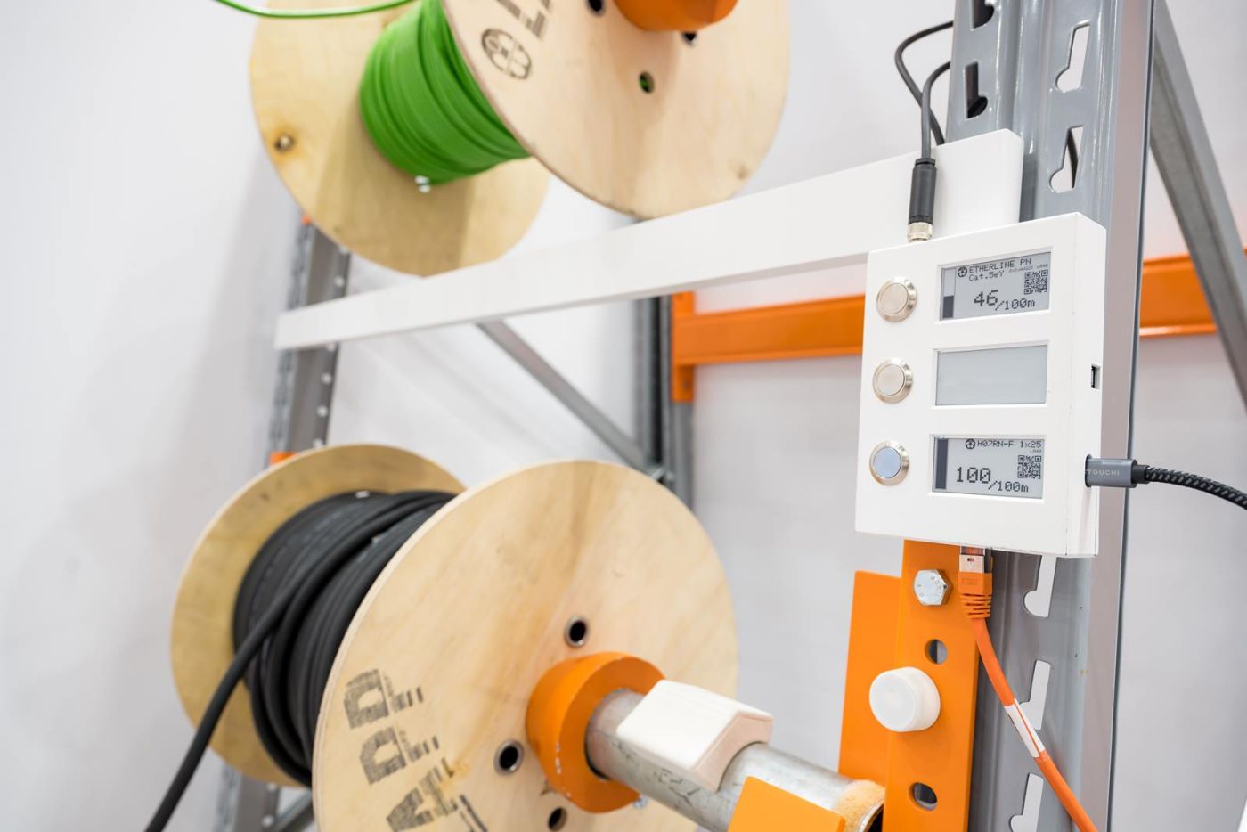 «Statt 10 bis 15 Prozent Ungenauigkeit liegen wir mit der neuen technischen Lösung bei einer Abweichung von +/-1 Prozent – das ist für den Anwendungszweck mehr als akzeptabel», sagt Dominik Schmalzried. Die Lösung liess sich Lapp daher patentieren. Sie besteht aus dem erwähnten Trägheits-Sensor an der Kabeltrommel oder der Achse und einem Display, das am Trommelregal angebracht ist.