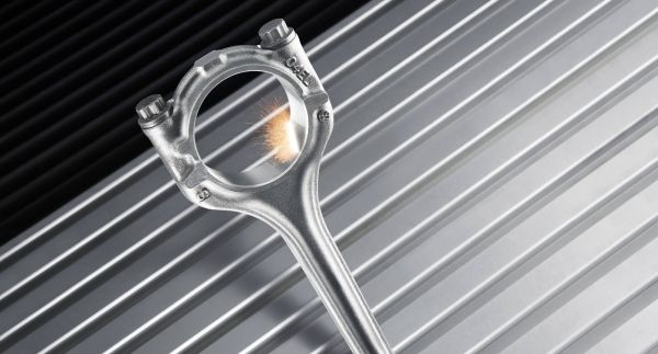 (Bild: Per Markierlaser aufgebrachte Oberflächenstrukturen an vier kleinen Stellen verbessern deutlich die Hafteigenschaften dieses Pleuels. (Bild: Trumpf)