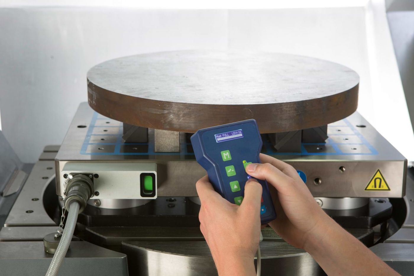 Komplettiert wird die Schunk Magnos KEH plus Steuereinheit durch die ebenfalls modular aufgebaute Handfernbedienung Schunk Magnos HABE-S plus. Diese ermöglicht eine individuelle Ansteuerung der einzelnen Magnetspannplatten sowie deren individuelle, 16-stufige Haftkraftregulierung. Via LCD-Display und LED informiert die Handfernbedienung kontinuierlich über den jeweiligen Spannzustand der angeschlossenen Magnetspannplatten. Bei Störungen werden über das Display zudem Fehlercodes ausgegeben, die die Ursachensuche vereinfachen.