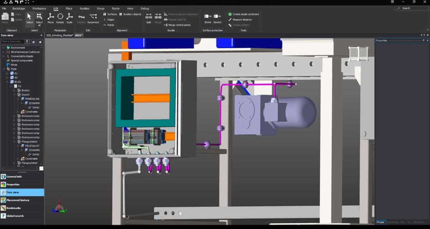 Mit der aktuellen Version 2023 erhalten Anwender jetzt Zugriff auf alle Artikel der Kategorie „Elektrotechnik“ in der Artikelverwaltung der Eplan Plattform. Daten von Motoren, Steckern, Kabeln etc. sind vollumfänglich verfügbar. Die zentrale Sicht auf Artikel erleichtert die Stammdatenpflege. Wird ein Schaltschrankaufbau (aus Eplan Pro Panel) in die Maschine integriert, lassen sich alle Bauteile mit ihren Anschlussinformationen übertragen. Sie bilden einen exakten Startpunkt für die Feldverkabelung.