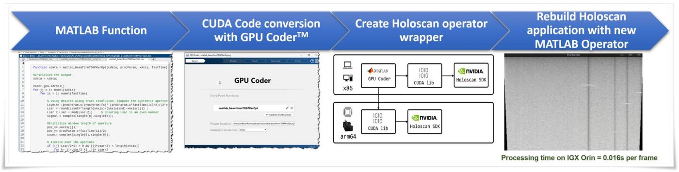 Ingenieure von Medizinprodukten können ab sofort die Entwicklung und Bereitstellung von Anwendungen zur Analyse und Visualisierung von Streaming-Daten beschleunigen, indem sie bestehende Matlab-Algorithmen und -Funktionen in GPU-beschleunigte NVIDIA Holoscan-Operatoren für Echtzeit-Datenverarbeitung und -Inferenz einbinden.