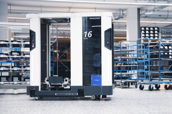 Um die Lücke zu schliessen zwischen dem automatisierten Lager und der automatisierten Produktion, hat Magazino den mobilen Logistik Roboter SOTO entwickelt. Er übernimmt das intelligente Handling und den Transport von KLTs (Kleinladungsträgern) in einer Lager- und Produktionsumgebung. Das Besondere dabei ist, dass der Roboter KLTs von passiven Regalen (also Regale ohne Förderelemente) entnimmt und das bereits ab einer Förderhöhe von 400 mm.