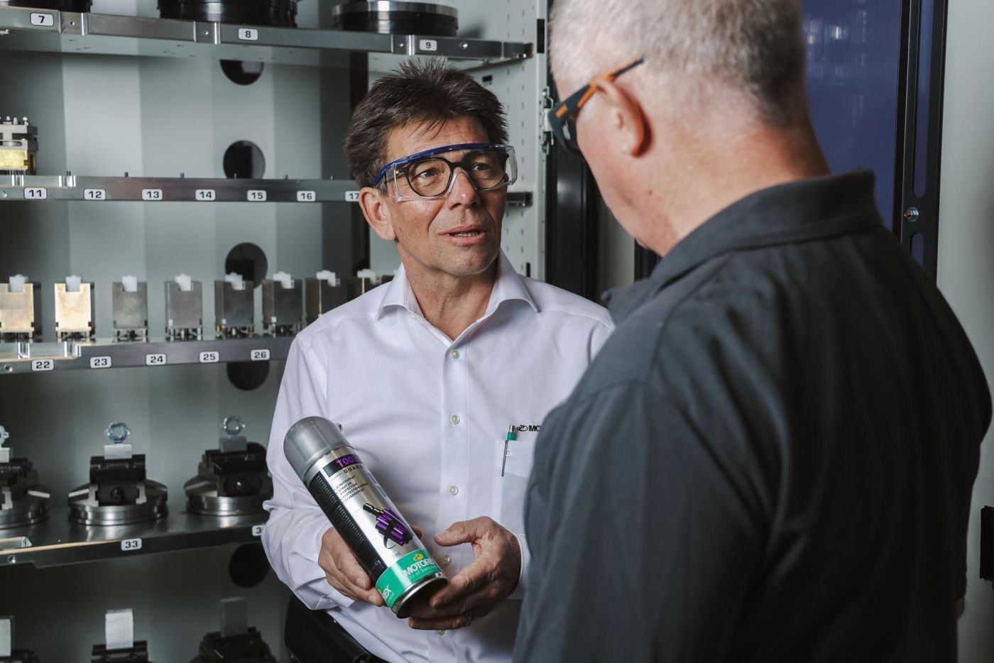 Digitalisierung ist der Wegbereiter für eine nachhaltige Produktion. Smarte Software überwacht dafür sämtliche Prozesse in Echtzeit, synchronisiert und analysiert Daten. Fluidlynx von Motorex geht dabei noch einen Schritt weiter. Das System regelt und steuert sich selbst. Martin Held konnte seine Mitarbeiter und Vorgesetzte deshalb rasch überzeugen, dieses System zu installieren. In einem ersten Schritt wurden zwei Coolant Boxen angeschafft und fünf bzw. sechs Maschinen daran angeschlossen.