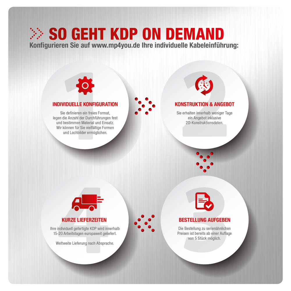 Die KDP/S-Z RI-2 spart beim Kunden Zeit und Kosten. Sie reduziert die Lagerhaltung und Kapitalbindung. Ausserdem verbessert die Kabeldurchführungsplatte den gesamten Beschaffungsprozess inklusive Lieferantenmanagement.