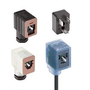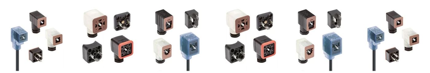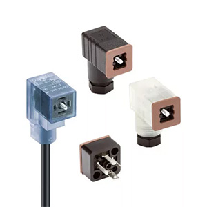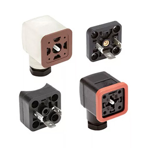 Ventilsteckverbinder der Form A sind an der Form des Steckerkopfes (ein Quadrat von 1 Zoll mal 1 Zoll) oder an den drei nach innen gerichteten U-förmigen Stiften zu erkennen. Die Stifte haben einen Abstand von 18 mm. Ventilsteckverbinder der Form A entsprechen der Norm EN 175301-803-A (früher als DIN 43560 bekannt) und sind in den Ausführungen 2-polig oder 3-polig + Erde erhältlich. Diese Steckverbinder wurden für den Einsatz mit Magnetventilen in hydraulischen und pneumatischen Anwendungen entwickelt, um eine sichere Stromversorgung auf wasserdichte Weise zu gewährleisten.