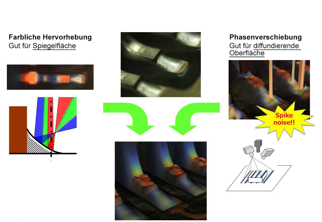 Für die sichtbare Inspektion setzt das Unternehmen auf die Hybrid-3D-Messtechnik, die das farbliche Hervorheben mittels Phasenverschiebung ermöglicht (Abb. 1). Durch das Kombinieren der erfassten Lötform mit hoher Spekularität (Spiegelung) mittels farblicher Hervorhebung und der genauen Höhenmessung mittels Phasenverschiebung, erfassen 3D-SJI-Geräte Variationen des Glanzes und der Form der Lötoberfläche.