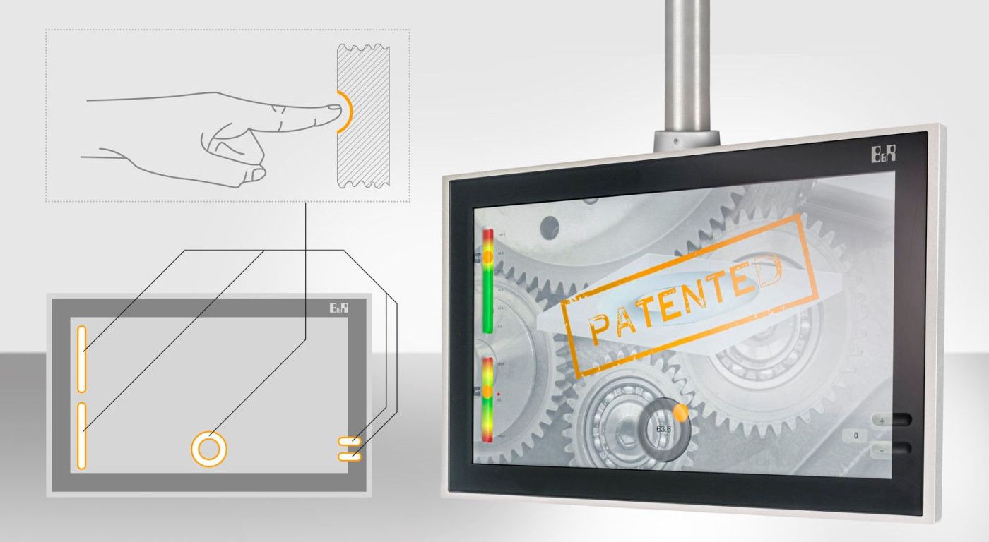 B&R versieht auf Kundenwunsch alle Panel-Varianten mit projiziert-kapazitivem Touchscreen mit entsprechenden Fingerführungen. Sämtliche Formen sind möglich. Dadurch lassen sich zum Beispiel Slider oder ein Drehrad optimal in die angezeigte Applikation integrieren. Die gesamte Displayoberfläche steht so für die Anzeige zur Verfügung. Die von B&R patentierten Fingerführungen sind haptisch greifbar und ermöglichen eine sogenannte blinde Bedienung. Der Maschinenbediener kann zum Beispiel einen Maschinenprozess beobachten und Einstellungen vornehmen, ohne den Blick von der Maschine abwenden zu müssen.