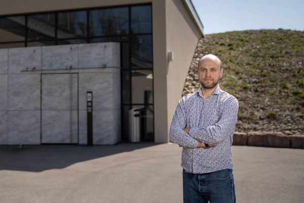 Im Bild: Grigory Smolentsev vor dem SwissFEL (Foto: Paul Scherrer Institut/Mahir Dzambegovic)