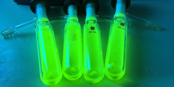 Gelblicher Feststoff, der intensiv grün leuchtet