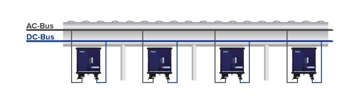 Lösungsansatz 1 und 2 zeigen, dass viele Unternehmen bereits selbst aktiv geworden sind, da sie die Vorteile einer dezentralen Stromversorgung erkannt haben. Weitläufige Anwendungen, wie Förderbänder oder Fertigungslinien, können dezentral deutlich effizienter und flexibler mit Energie versorgt werden. Dank einer Installation der Stromversorgung direkt neben der Last, können kürzere Kabel mit geringerem Querschnitt verlegt werden. Das spart Kosten für Kupfer und die Stromversorgung muss nicht länger überdimensioniert werden.