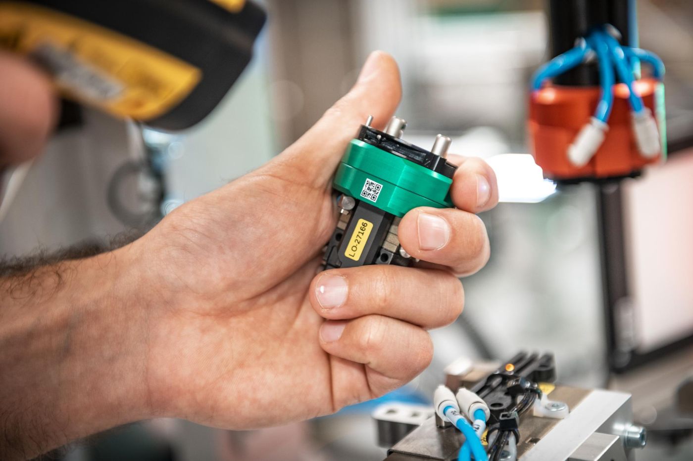 Jedes Werkzeug verfügt über einen QR-Code. Beim Einrichten eines neuen Auftrags scannt der Maschinenbediener diesen beim Einsetzen ab, so dass die Steuerung im Hintergrund eine Plausibilitätsprüfung durchführen kann. Stimmt der QR-Code nicht mit den im Programm hinterlegten Angaben überein, gibt es eine Fehlermeldung.