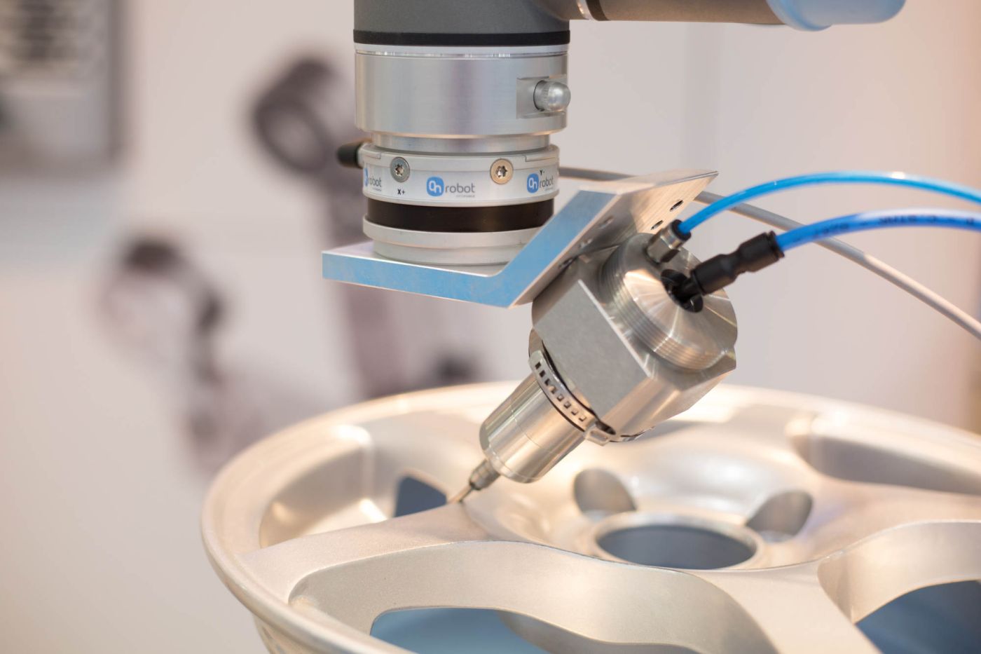 Bei der Behandlung von Oberflächen – sei es Entgraten, Polieren oder Schleifen – empfiehlt sich hingegen weniger der Einsatz klassischer Greifer als vielmehr die Kombination notwendiger Werkzeuge mit entsprechenden Sensormodulen. Die zentrale Herausforderung liegt bei der Oberflächenbehandlung nämlich primär darin, den Kraftaufwand des Werkzeugs genau zu dosieren und konstant zu halten. Zudem muss der Endeffektor den Konturen des Werkstücks exakt folgen können. Mit Kraft-/Drehmoment-Sensoren wie etwa den HEX-Modellen von OnRobot ist ein Roboterarm auch ohne aufwändige Programmierung hierzu in der Lage.