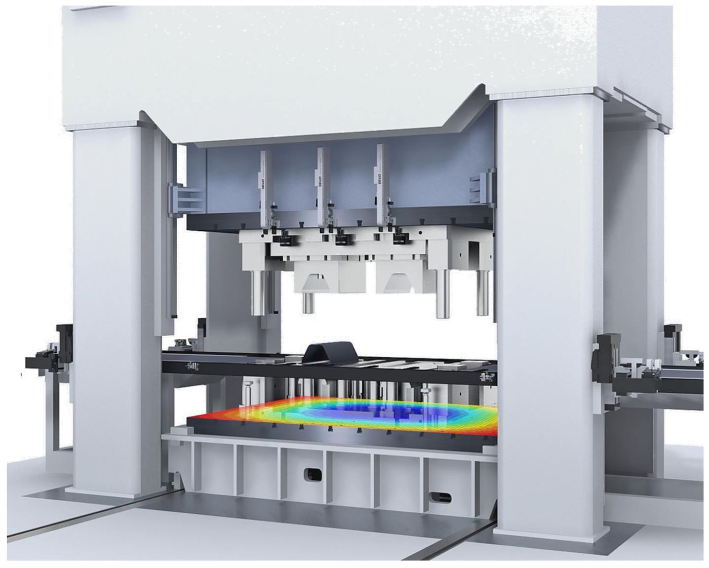 Bei einer rein erfahrungsbasierten Auslegung neuer Presswerkzeuge wird das elastische Verformungsverhalten der Presse nur unzureichend abgebildet und steht weder für Simulationen noch für Variantenstudien zur Verfügung. Eine umfangreiche manuelle Nacharbeit an den Werkzeugwirkflächen ist dann die Regel – so lange, bis die Werkstückqualität «passt». Dieses Tryout ist zeitraubend und sehr teuer. Lösungen für eine wissensbasierte Auslegung der Werkzeugwirkflächen auf individuelle Presseneigenschaften hin sind nicht grundsätzlich neu. Dass bisherige Möglichkeiten jedoch nicht ausgeschöpft werden, liegt oft an der hohen Komplexität und dem erforderlichen Expertenwissen etwa zur Kopplung von Softwaretools zur digitalen Simulation und Analyse (Finite-Elemente-Solver).