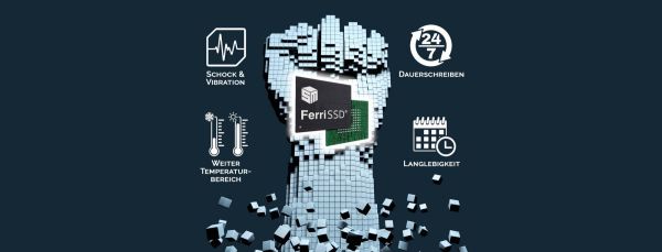 Für den Einsatz in einer rauen Umgebung ist diese Konfiguration schlecht geeignet. Schock und Vibrationen belasten die Mechanik und die Kontakte, und Temperaturwechsel im industriellen Massstab beanspruchen die Lötstellen. Mit einer Single-Chip-Lösung, die alle Komponenten in einem IC-Gehäuse vereint und hermetisch versiegelt, lassen sich diese Problemstellen vermeiden. Das BGA-Gehäuse kann im üblichen Prozess zusammen mit den anderen Schaltungskomponenten auf der Leiterplatte verlötet werden. Im Folgenden soll der Begriff SSD für alle Speichermedien gelten, bei denen die Flash-Chips über einen Controller unabhängig von der Schnittstelle an ein Host-System angeschlossen werden.