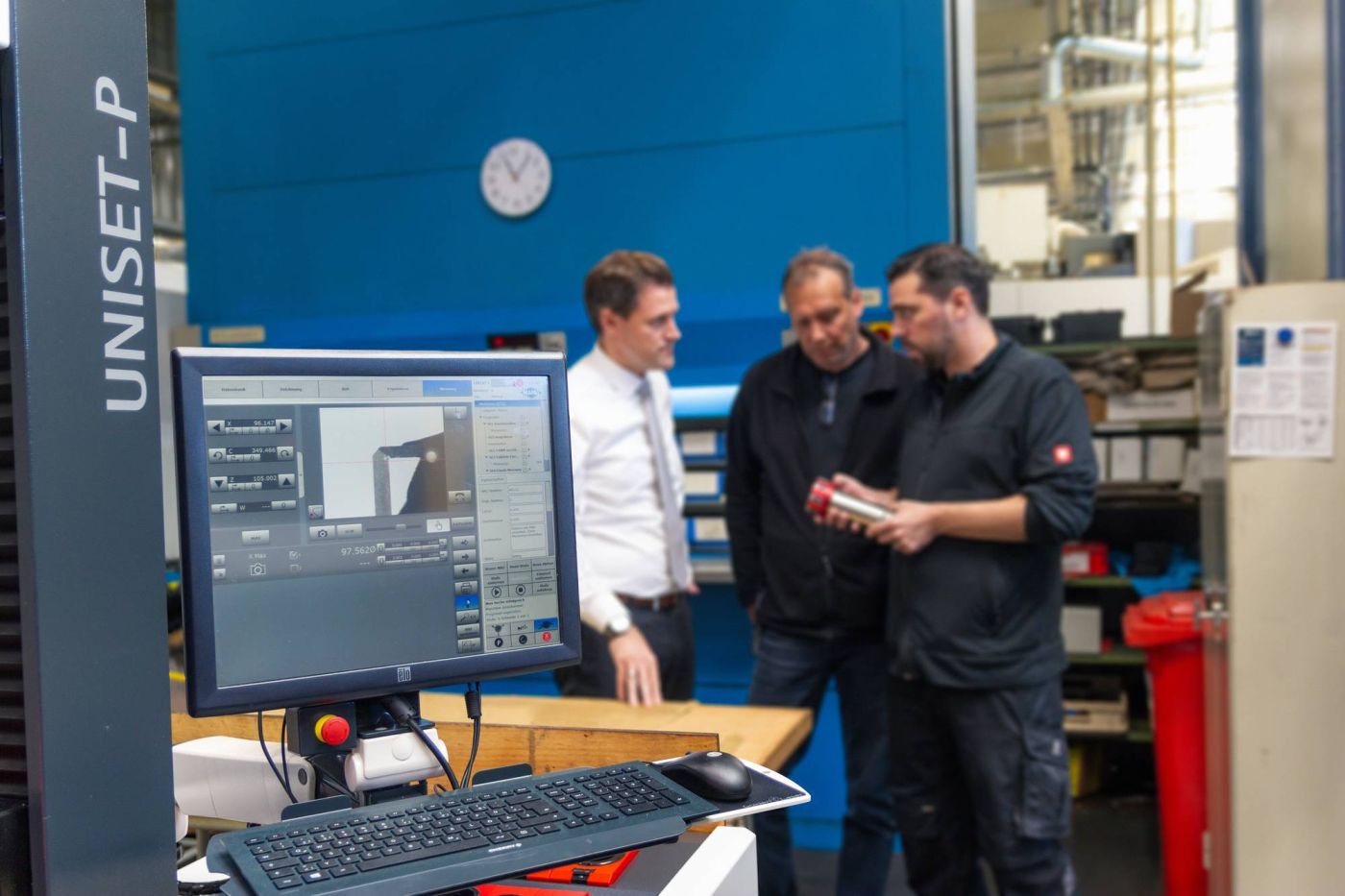 Doch das ist nicht der einzige Vorteil, den das Uniset-P für das Unternehmen bietet. «Der Zyklus für das Einstellen der Werkzeuge kann voreingestellt und gespeichert werden», erläutert Michael Hils. Das heisst, der Bediener wählt sein einzustellendes Werkzeug am Monitor aus und bekommt Schritt für Schritt erklärt, welche Werte er einstellen muss. Diese Werte werden einmalig für jedes Werkzeug festgelegt, das entsprechende Messprogramm wird erstellt und gespeichert.