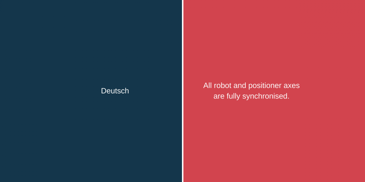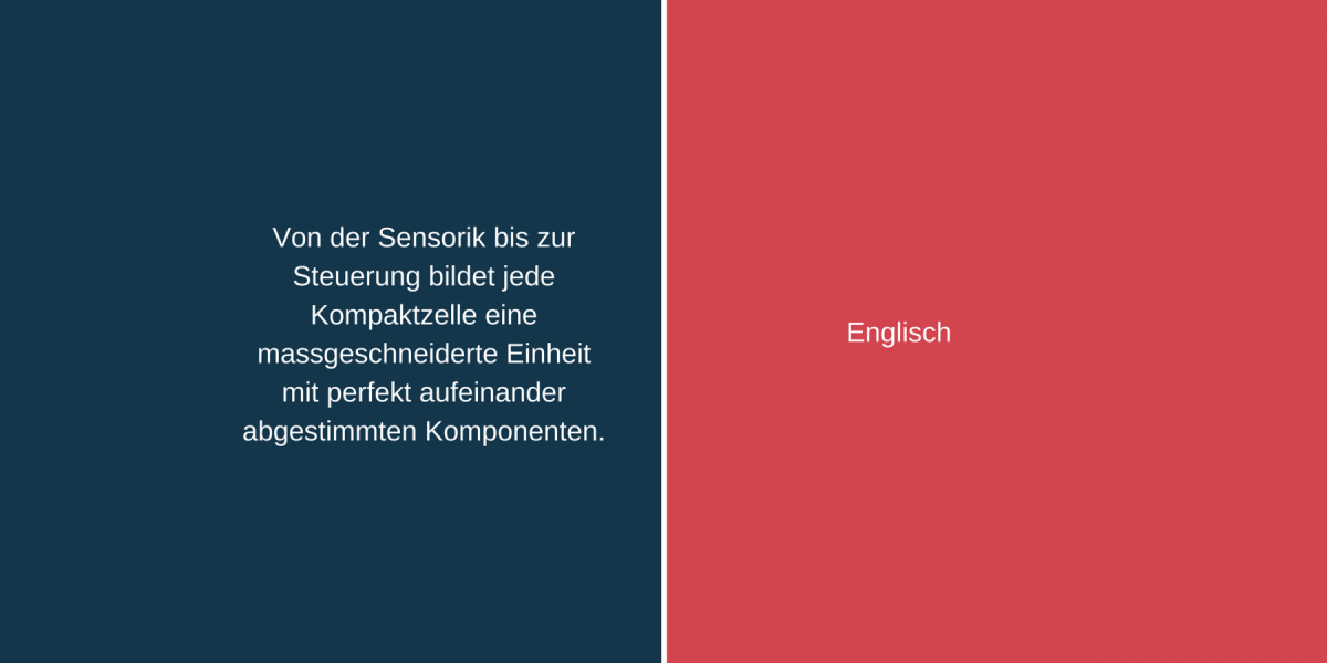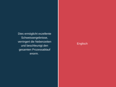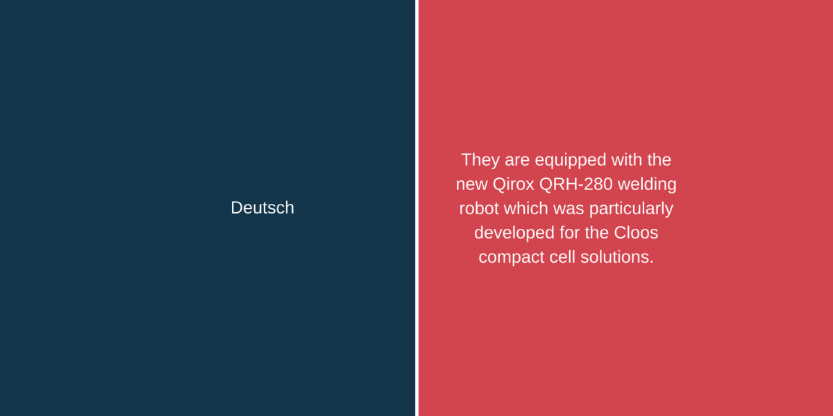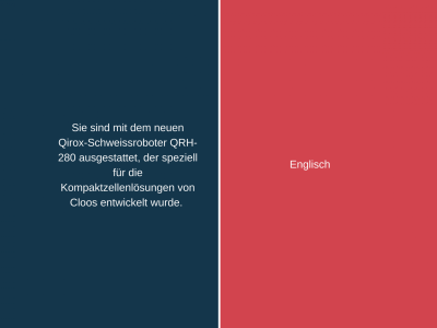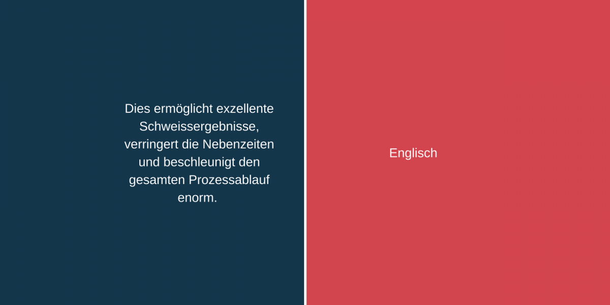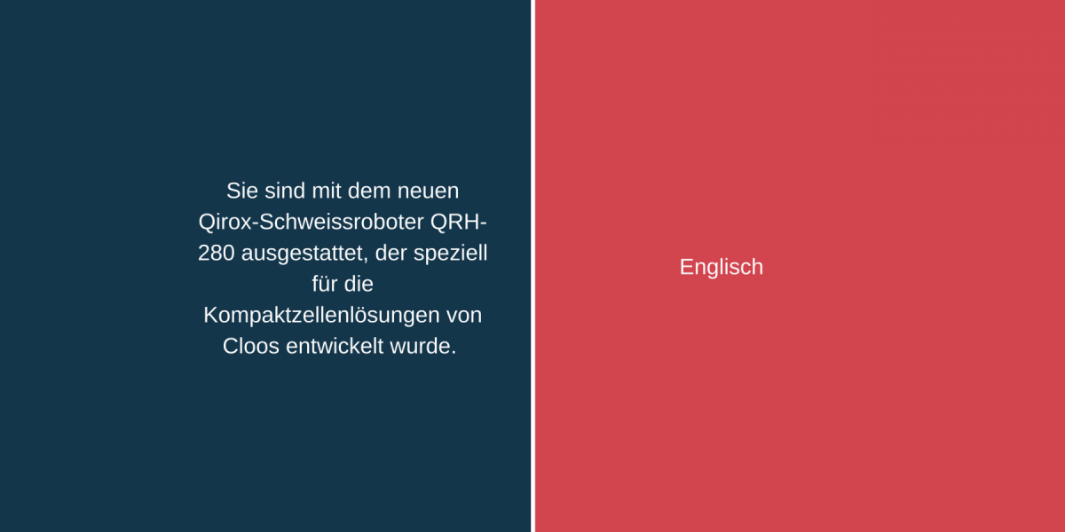 Wie heisst nochmals «massgeschneiderte Einheit» und «verringert die Nebenzeiten» auf Englisch? Bewegen Sie den Schieber nach links oder rechts und wechseln Sie in der folgenden Pressemitteilung von Cloos zwischen englischem und deutschem Fachtext und dem dazugehörigen Fachjargon. Sie können zum Beispiel den deutschen Satz zuerst lesen und sich überlegen, wie Sie ihn übersetzen würden. Dann schauen Sie nach, wie die Firma Cloos den Satz übersetzen liess.