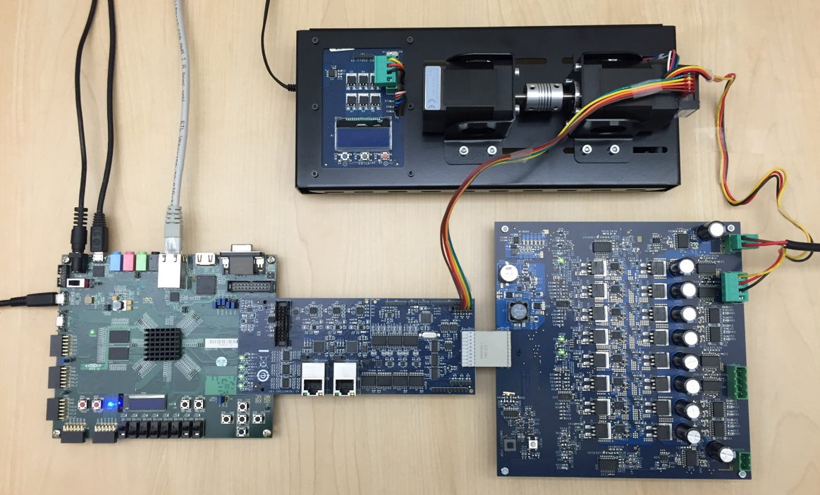 Für eine Fallstudie soll der Entwurf eines Geschwindigkeitsreglers für einen Permanentmagnet-Synchronmotor unter Verwendung eines feldorientierten Regelalgorithmus (Field-Oriented Control, FOC) betrachtet werden, der auf einen Zynq-7000 All Programmable SoC Intelligent Drives Kit II (Abbildung 2) implementiert wird. Die Motorregelung wurde ausgewählt, da bei dieser Anwendung Algorithmus- und Embedded-Ingenieure eng zusammenarbeiten müssen. Das Zynq Intelligent Drives Kit II wurde gewählt, weil es sofort verfügbar ist und die erforderliche I/O-Schnittstellen-Unterstützung bietet.